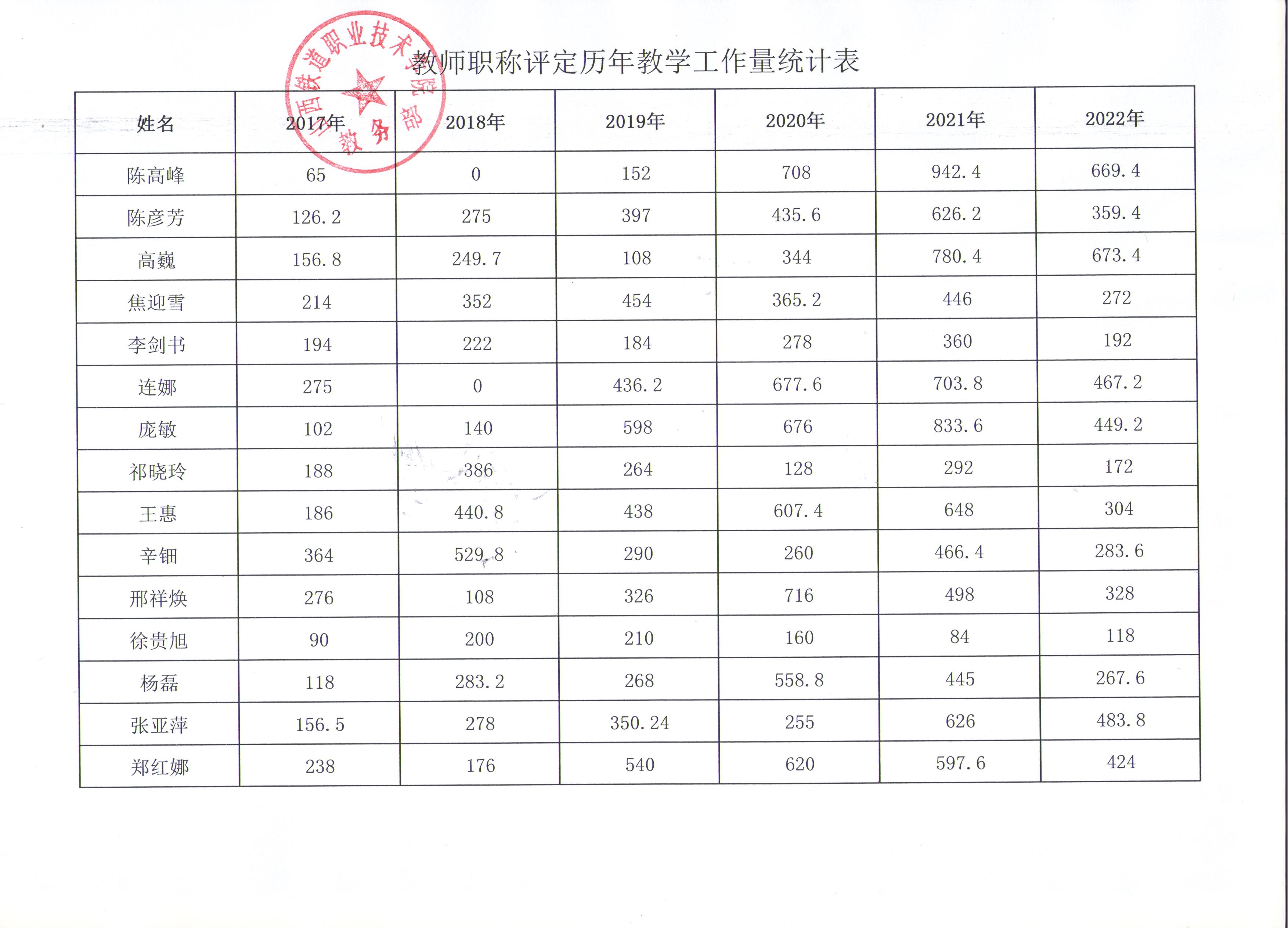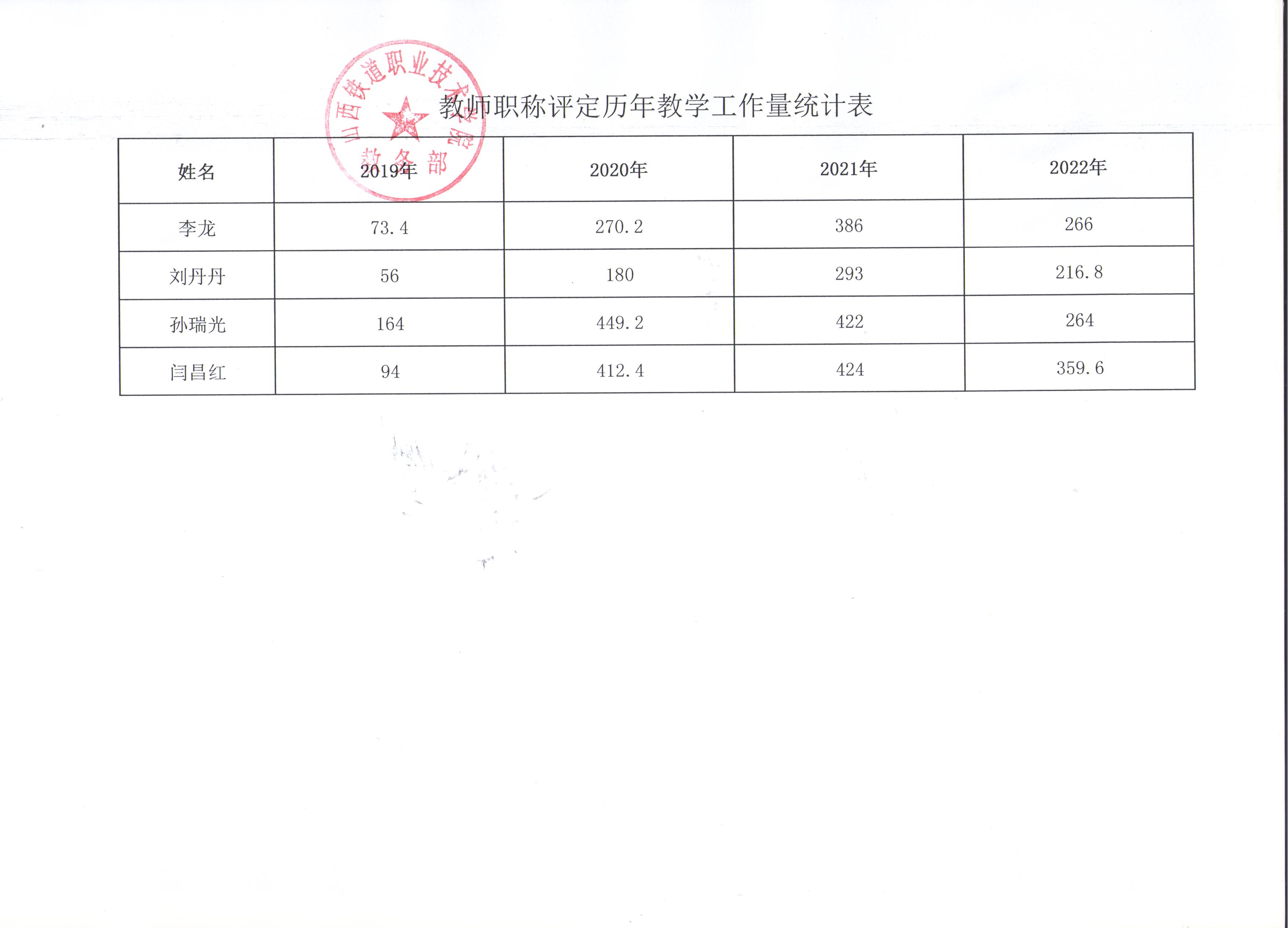 山西铁道职业技术学院 关于2022年申报职称人员历年教学量化考核结果公示